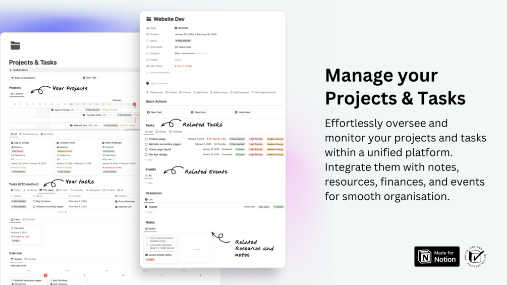 Supercharge your daily life with the ultimate second brain system. Organise and manage your life easily by connecting resources, notes, events, and finances to your projects. Get things done efficiently.